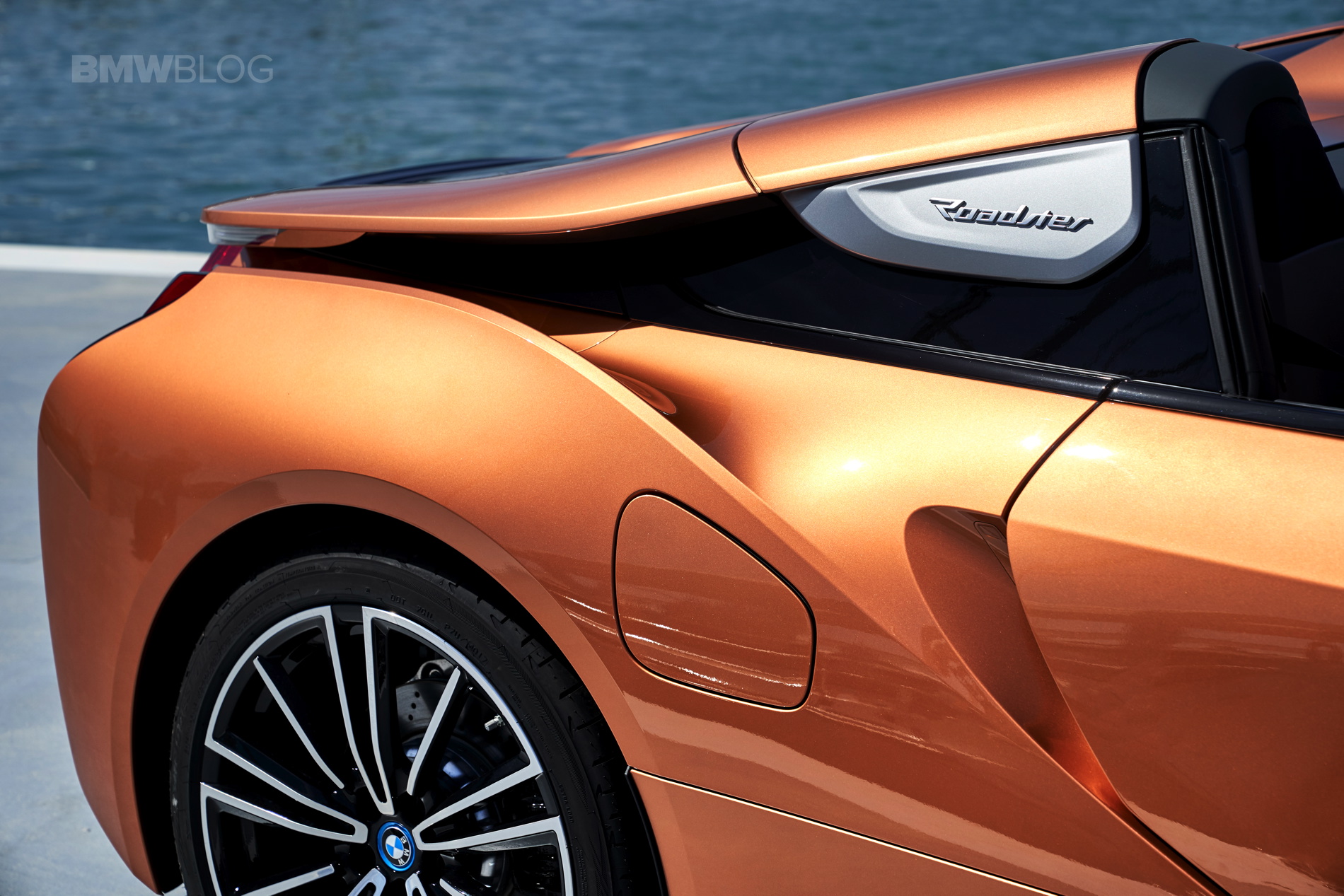 Another design element that some may find odd when compared to the fixed roof i8 is the closed-off air vent in the front bonnet. According to BMW engineers and designers, the idea behind this functional – or non-functional element, depends how you look at it – was to remove the hot air blowing over the header rail onto the roadster’s passengers. Instead, the air is now redirected out through the front wheelarches and under the car, which would affect its aerodynamic coefficient. In order to address that, a new rear diffuser was designed, along with front splitter that directs the air accordingly to minimize lift as it travels under the car.