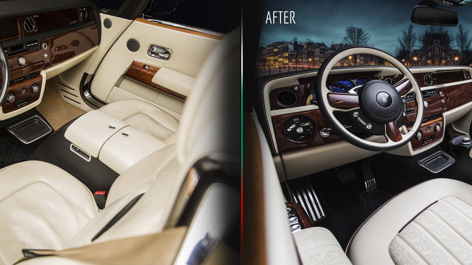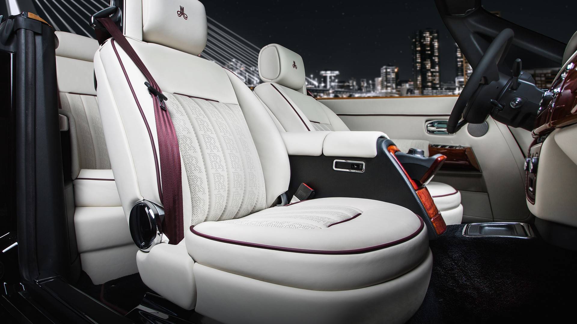 They completely transformed this 2-door Phantom by replacing all the aging leather inside and adding their own touch to the whole thing. For example, the central sections of the seats have been decorated with a perforated double-R pattern. And while that may seem like it’s just a detail that doesn’t have any practical function, you’d be wrong, as the ventilated seats will ooze cool air through those tiny perforations to cool down the patrons inside during hot summer days with the top down.
