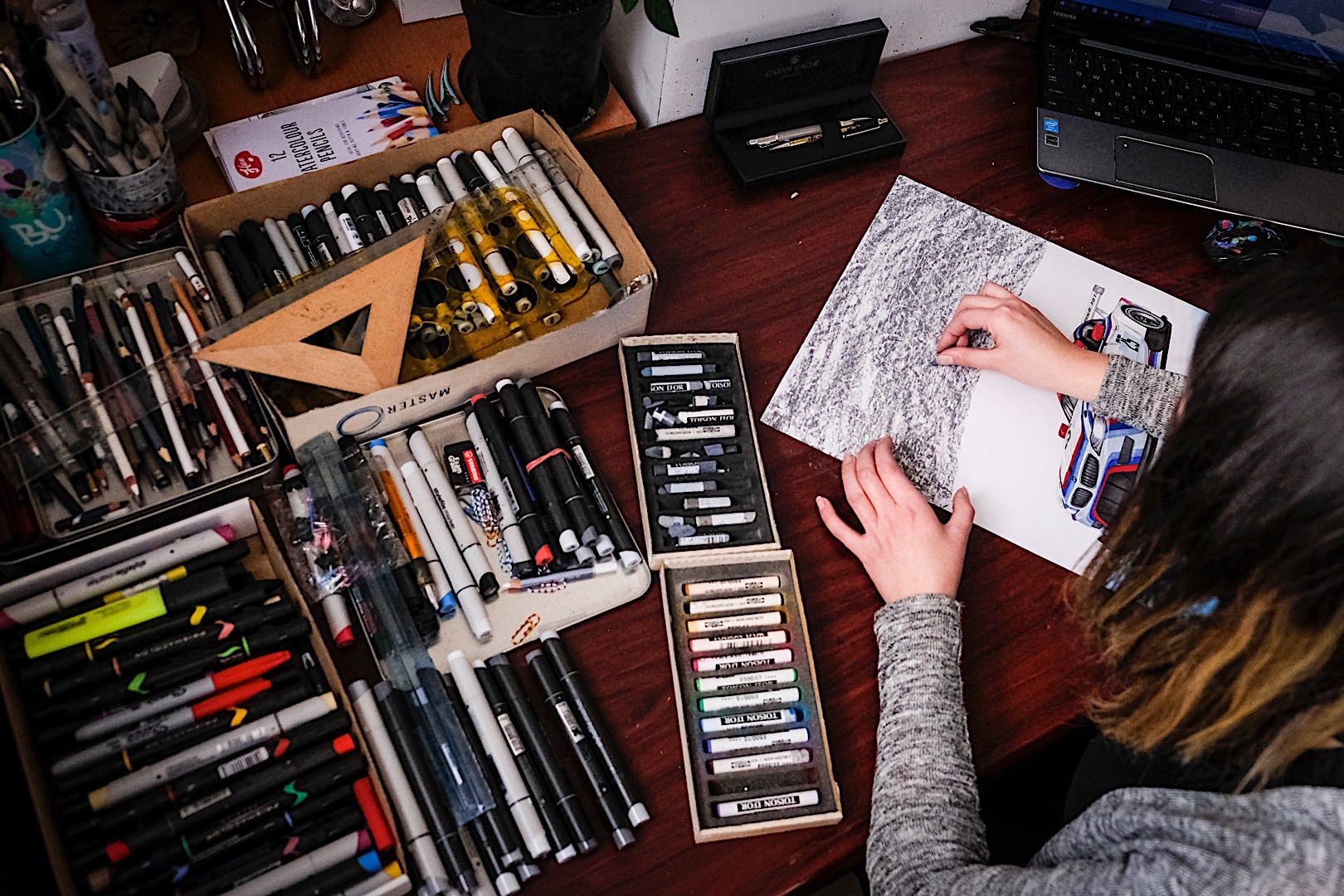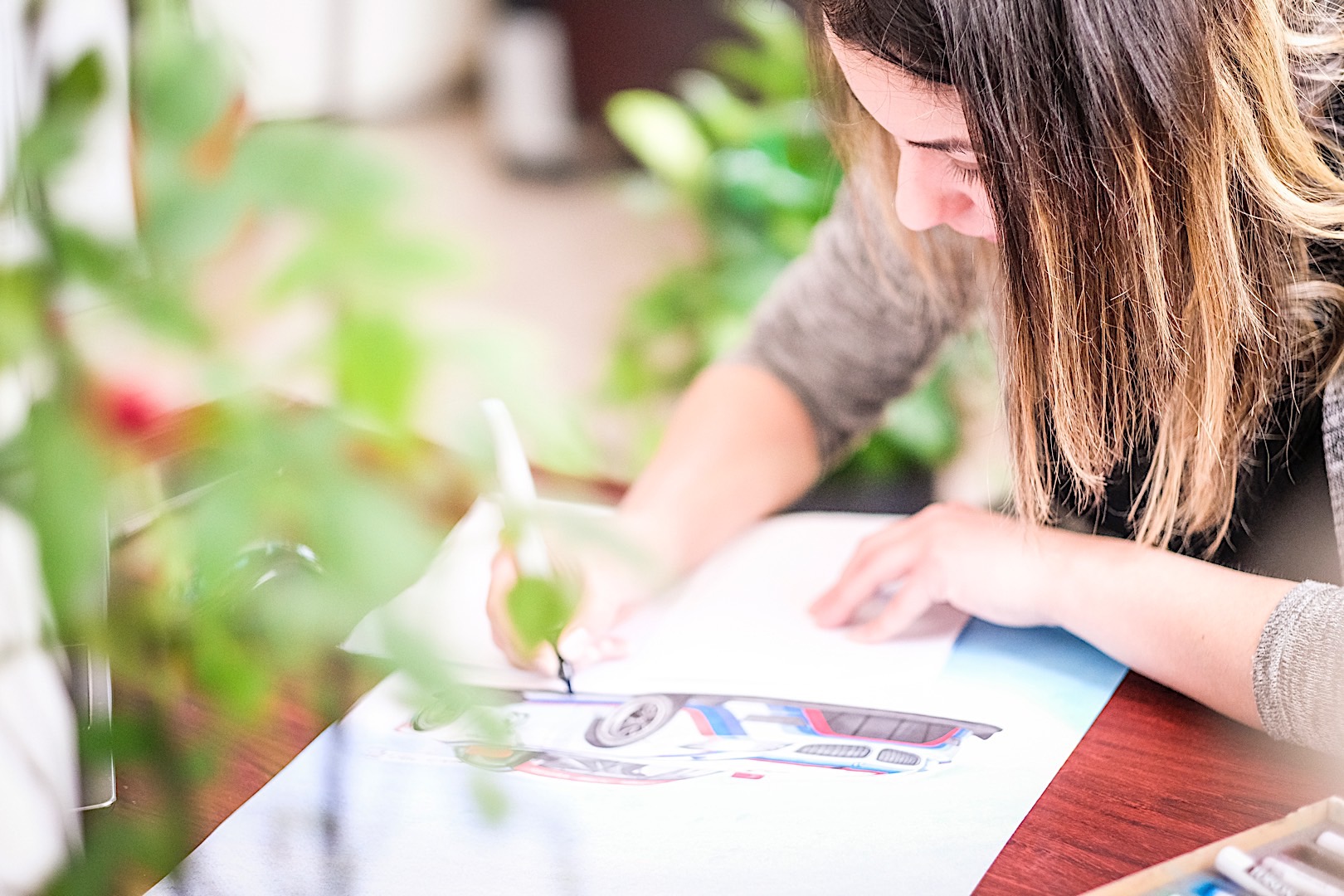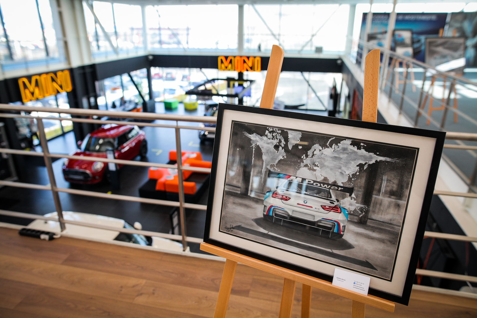 From the E9 CSL model to the iconic M1 and the more recent BMW M6 GT3 model, legendary cars have been brought to life by Andra in her first exhibition. Were you to find yourself at the exhibition you’d be hard pressed to figure out who drew them though, as I found her to be a quiet and down-to-earth kid of girl, just strolling around the paintings beautifully displayed at the Automobile Bavaria showroom in Bucharest, which also happens to be the only BMW M authorized dealer in the country. If the PR representative wouldn’t have pointed me in her direction, I might’ve missed the chance to learn her story.
