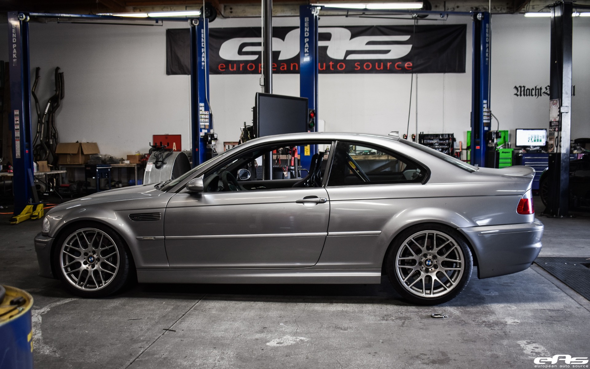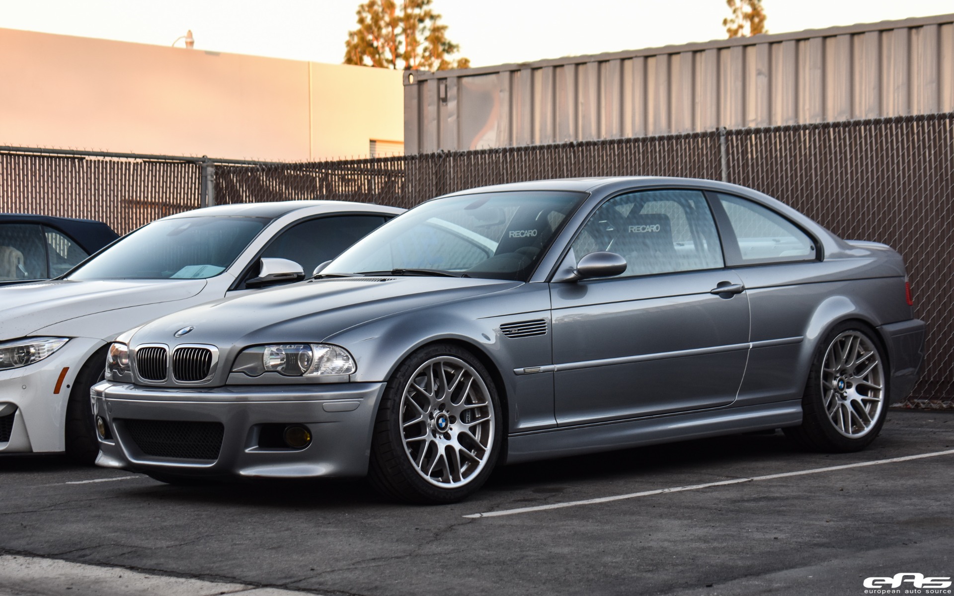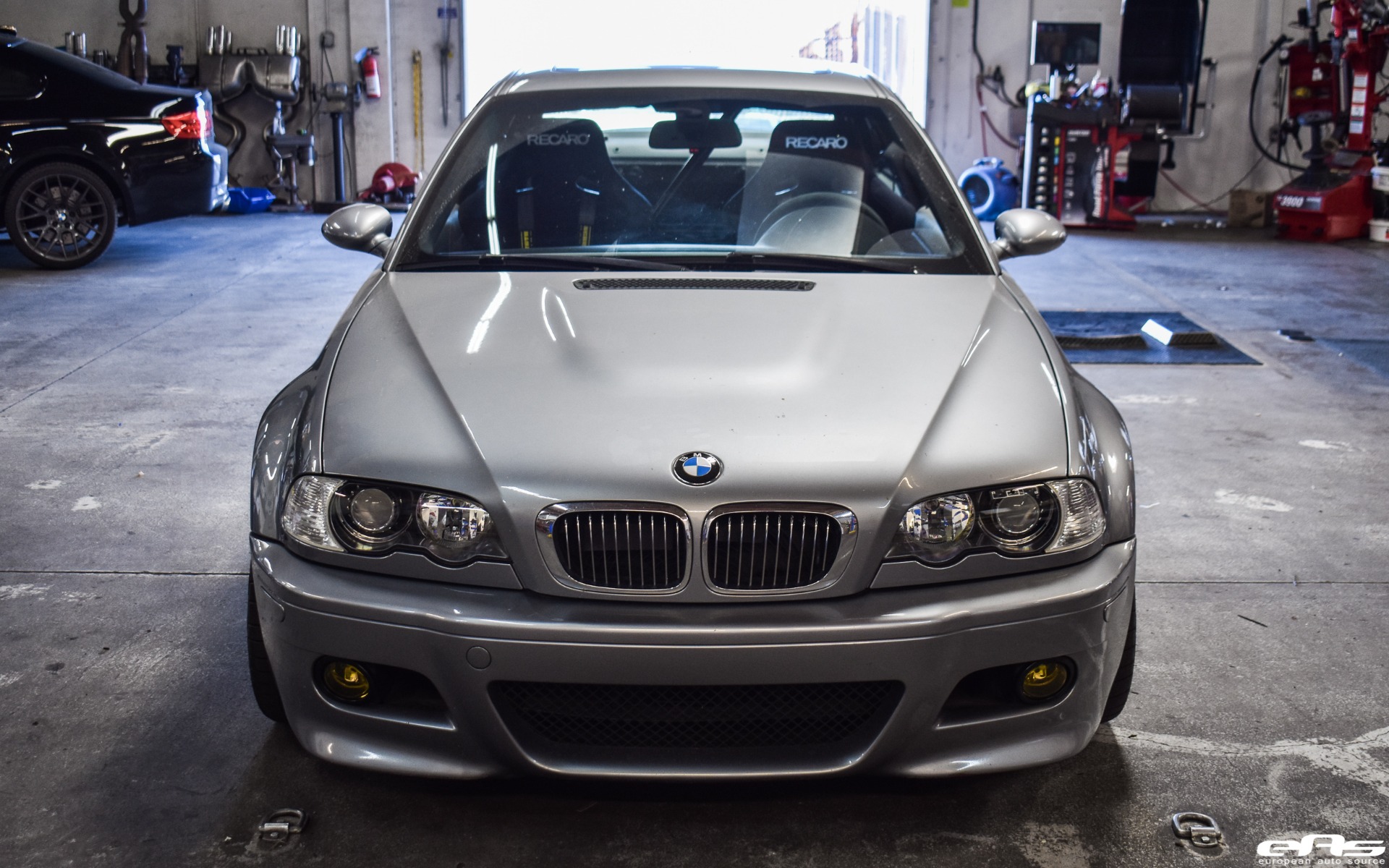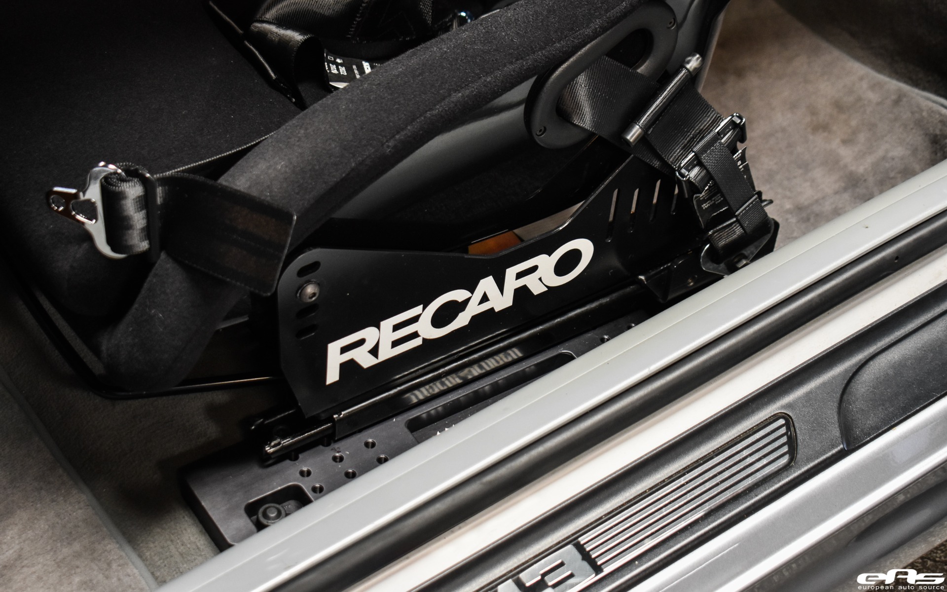 This particular Silver Gray BMW M3 was recently visiting European Auto Source. It was with this tuning company that the car received some much-needed track oriented additions. Namely, the owner wanted to improve his driving position by adding a set of bucket seats. The choice landed this M3 with a set of Recaro Profi SPG seats. These fixed shell bucket seats can completely transform the way a car looks and feels to drive. With rigid bolstering and the ability to sit in the seat, as opposed to on top of it, the driver will stay put under cornering.