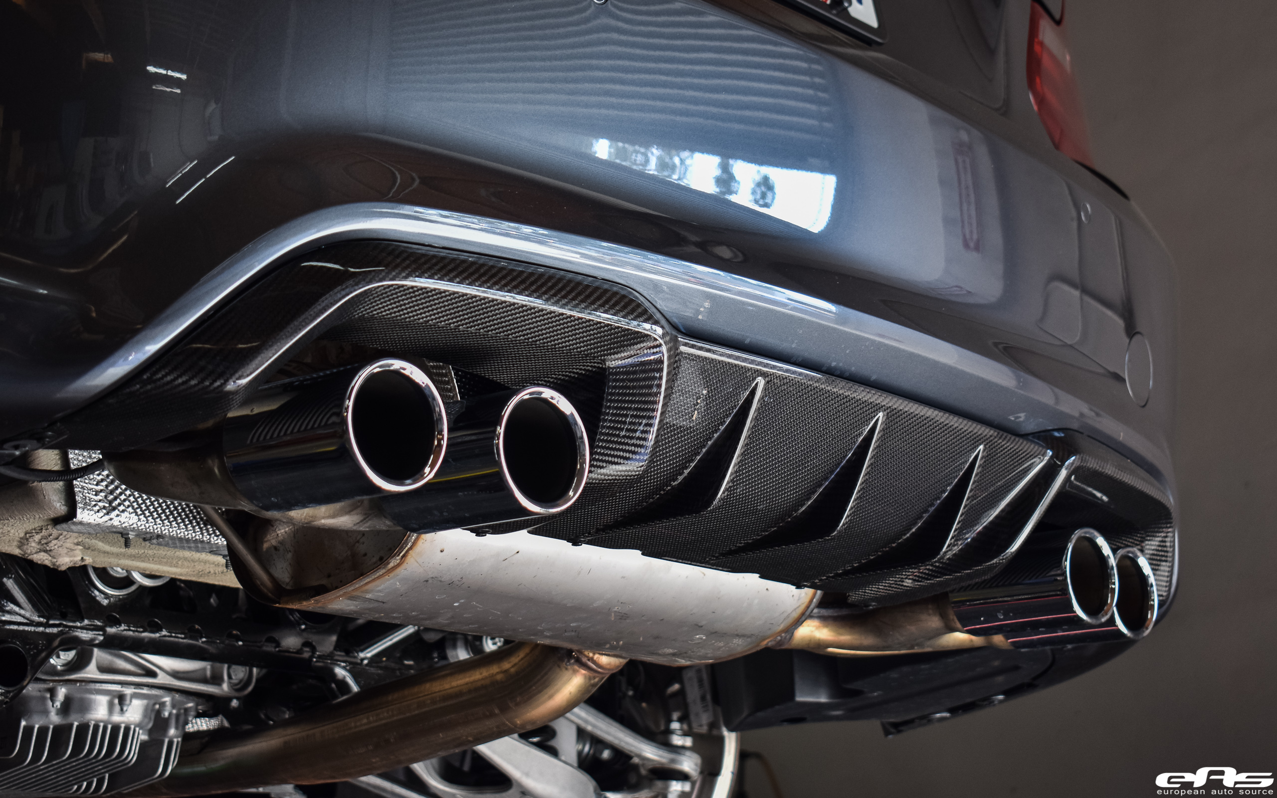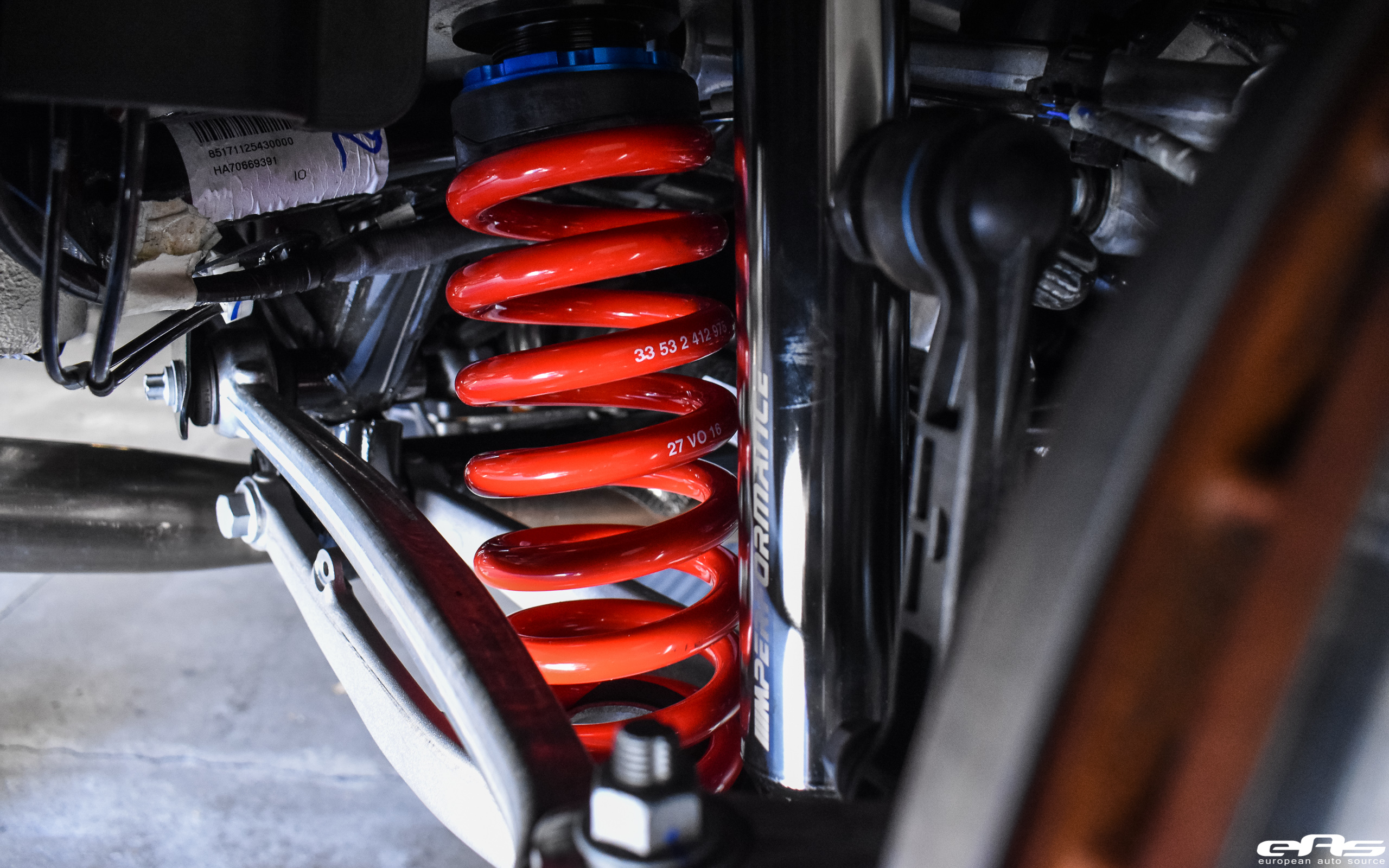 First, the technicians installed a BMW M Performance carbon fiber trunk spoiler, a gloss black marker set and a rear diffuser. While not much, the carbon fiber really sets off the exterior and gives it a motorsport-inspired theme. The cosmetic updates are joined by a BMW M Performance coilover set. For the first time ever, BMW M Performance is offering a fully height adjustable coil-over suspension system with independent bump and rebound adjustments within this package. With spring-rates that are approximately 40% stiffer than stock, you can be sure that the M Performance Coil-over Suspension system helps turn any road into your personal playground.
