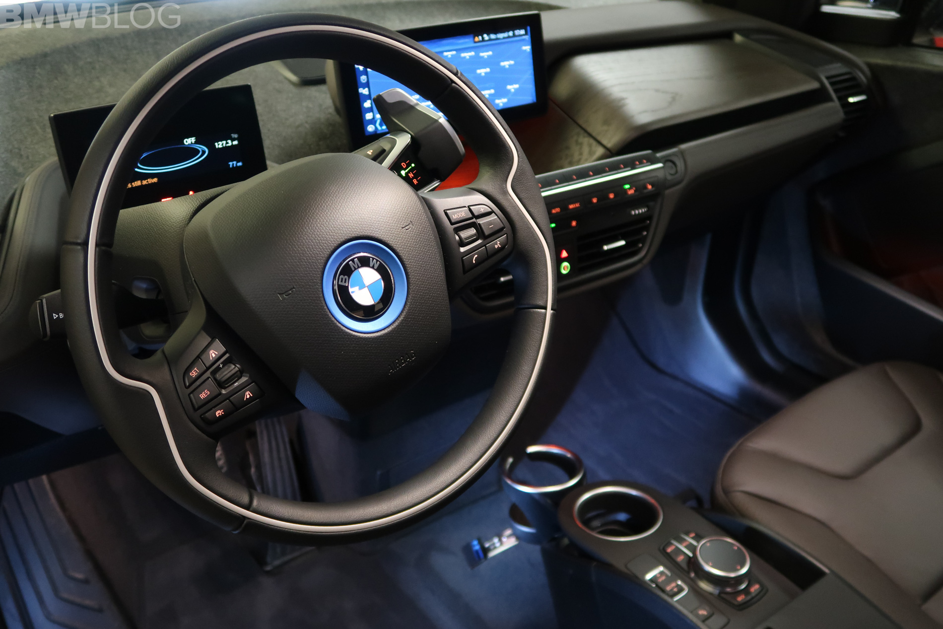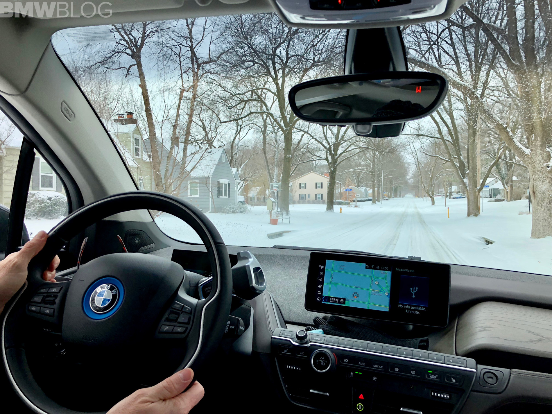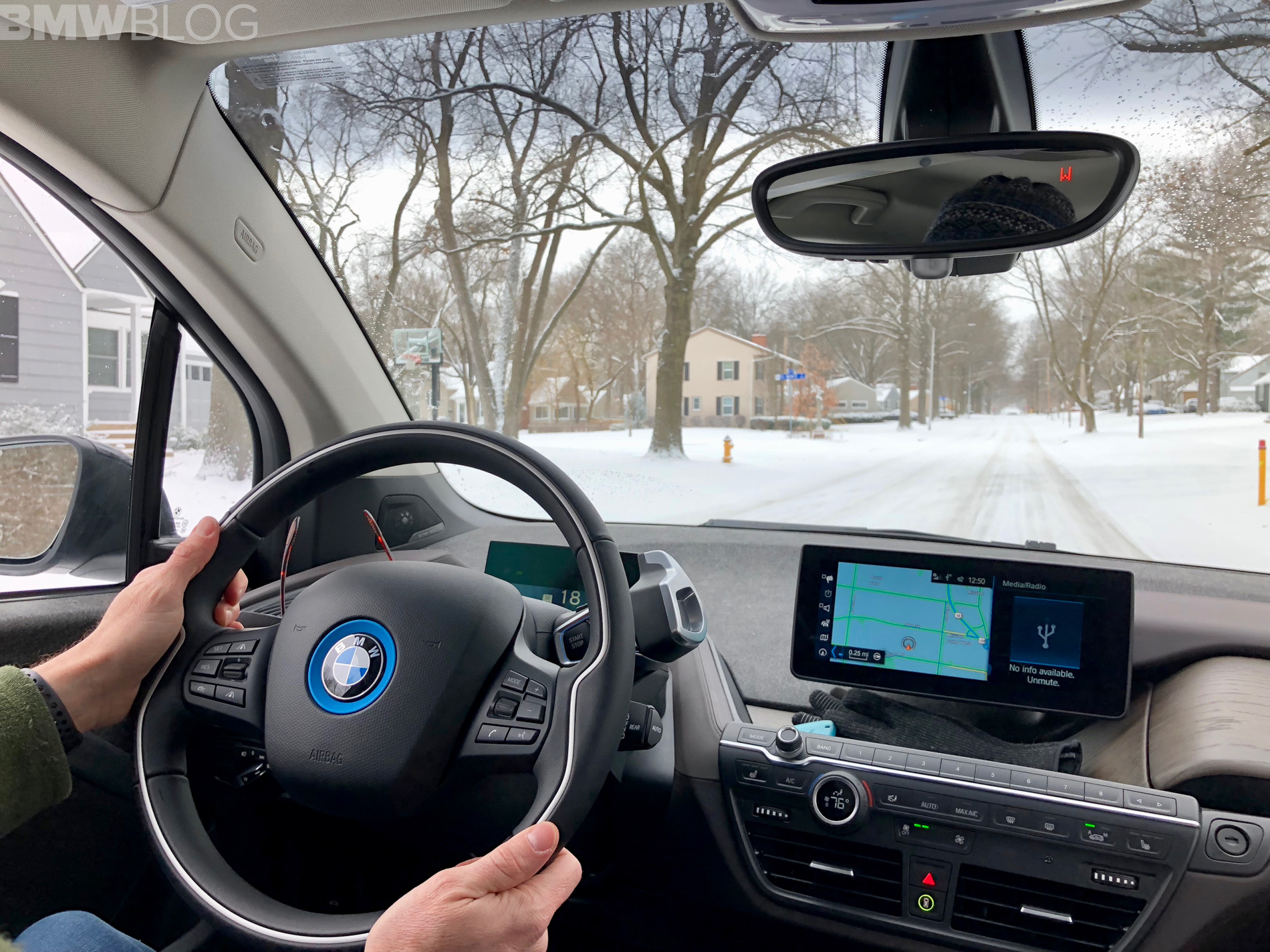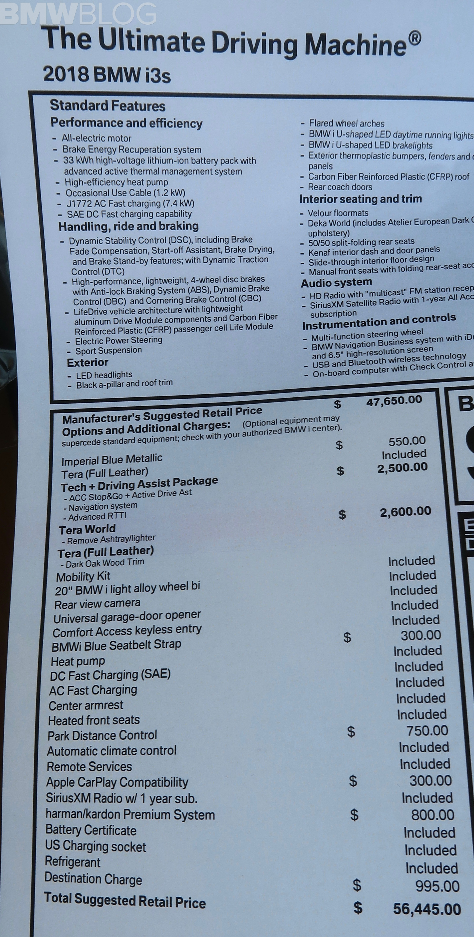 We picked up our new 2018 Imperial Blue Metallic i3s on January 4th, right in the dead of winter. We opted for the Tera World with Brown Full Leather, plus the Technology and Driving Assistant Package. To top it off, we also went for the BMW i Blue Seatbelts, Harman Kardon Sound and Apple CarPlay, for a total MSRP of $56,445.