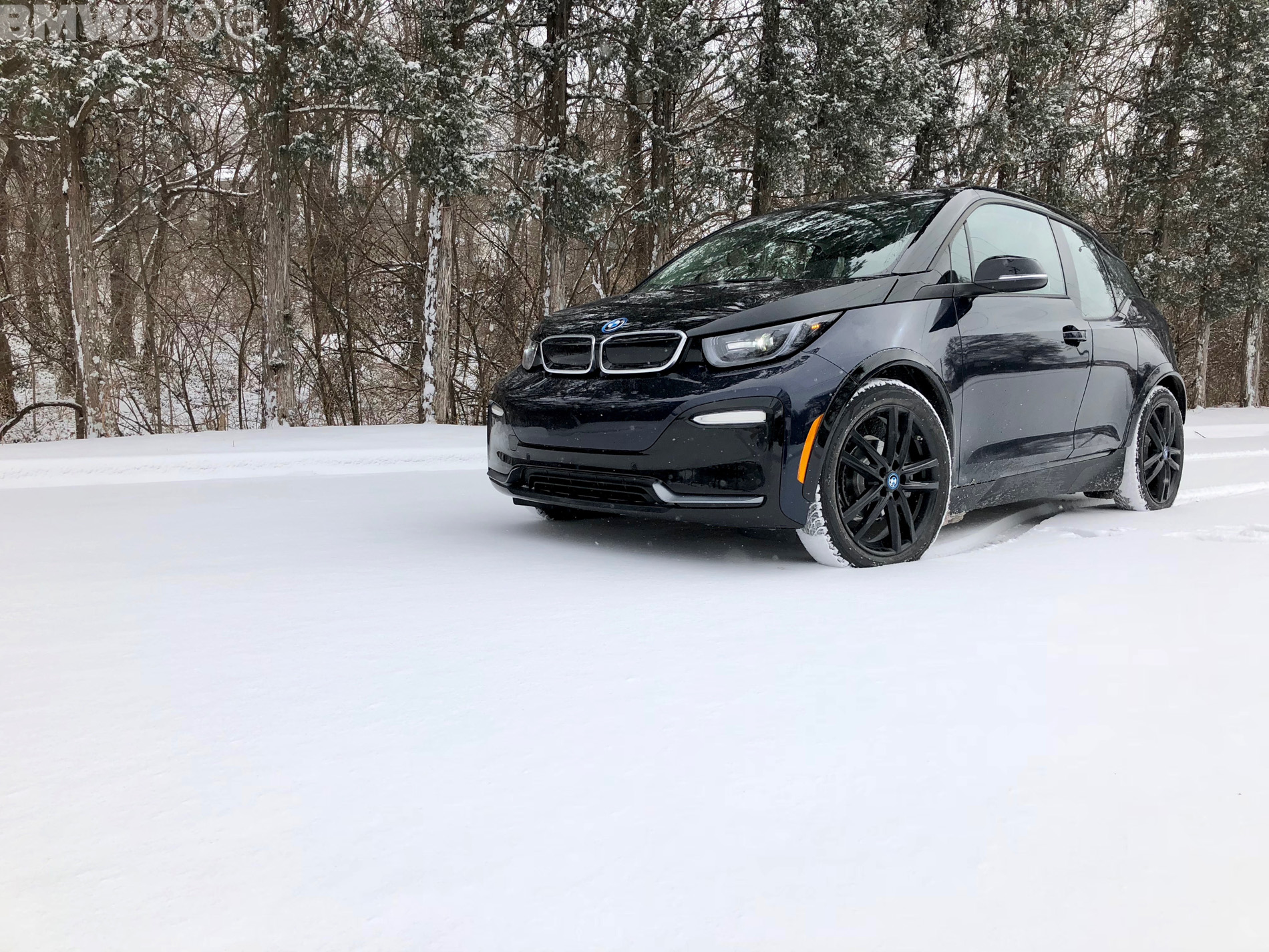 I’ve found the i3s to quite stable in the snow and ice. It seems the increase track width and lower center of gravity give it more sure footing. We have had several snow storms and three days of ice, and the improved stance – being lower and wider- was definitely noticeable in the poor conditions. As all i3 models are rear-wheel drive, traction is extremely important and why we definitely recommend snow tires. I love going around sport utes that are stuck in the slick stuff. It never gets old. The must look at the little quirky i3 and think how in the world is it making it up the hill and my all wheel drive truck is not!