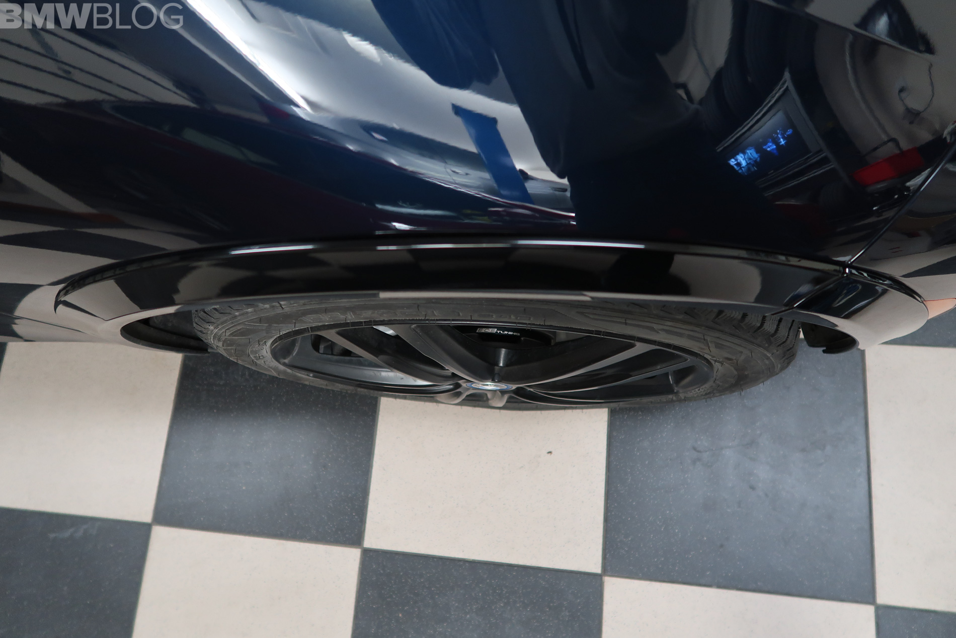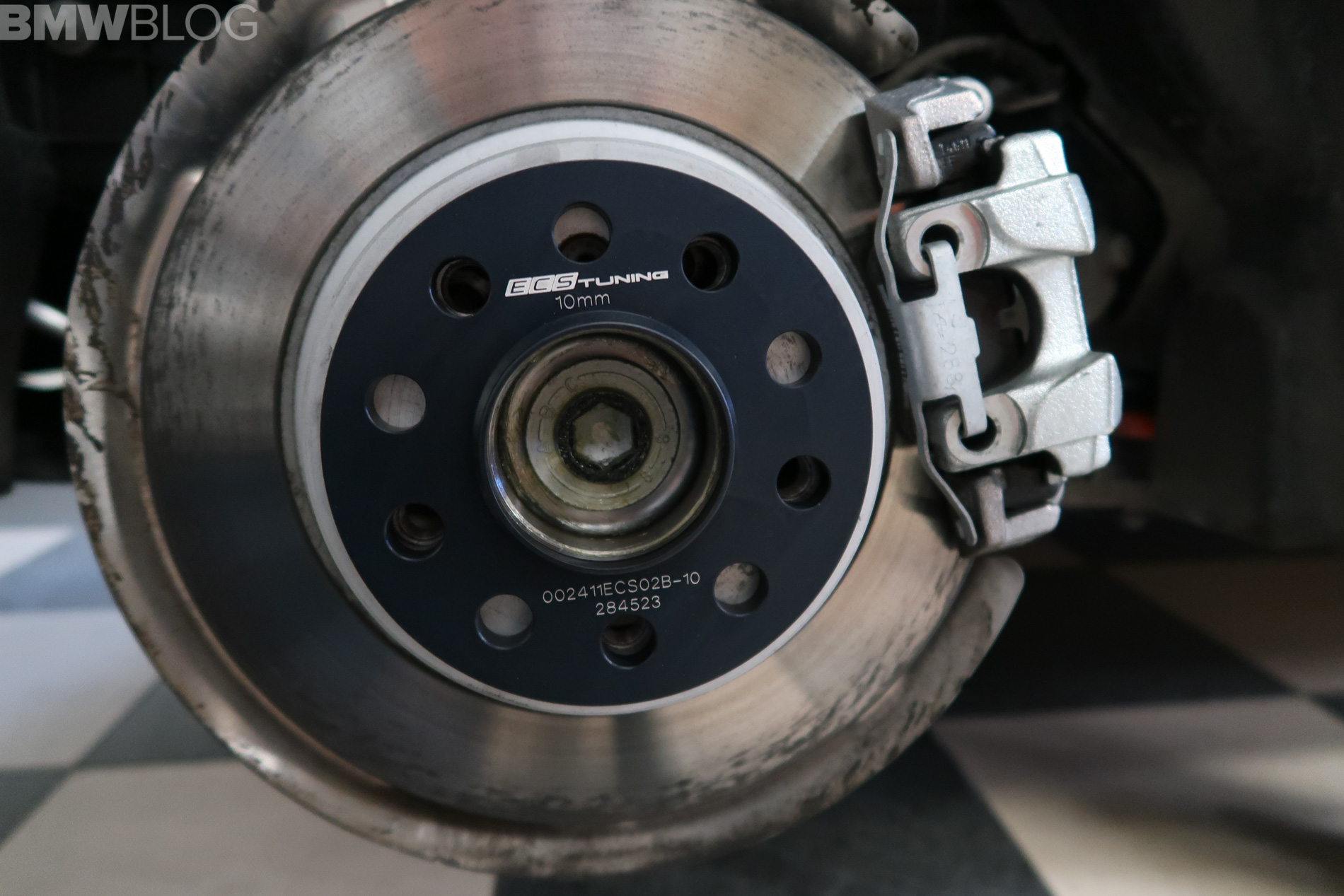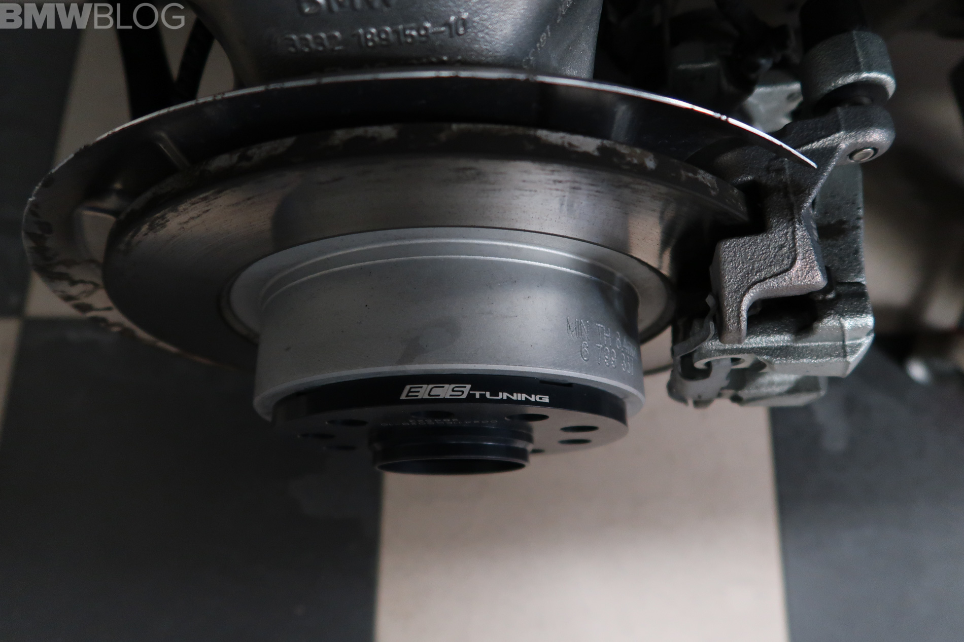 The reason that the regular i3 snow wheel set rubs is because BMW used a 10mm wider offset in the front and 15mm in the rear to help them achieve the 40 mm of increased track width for improved handling. This unique offset on the i3s is why our dedicated 19 inch Rial wheels and snow tires we used on our 2014 i3 wont work. We managed to overcame all these issues, with, drumroll please, spacers from an aftermarket tuner, ECS.