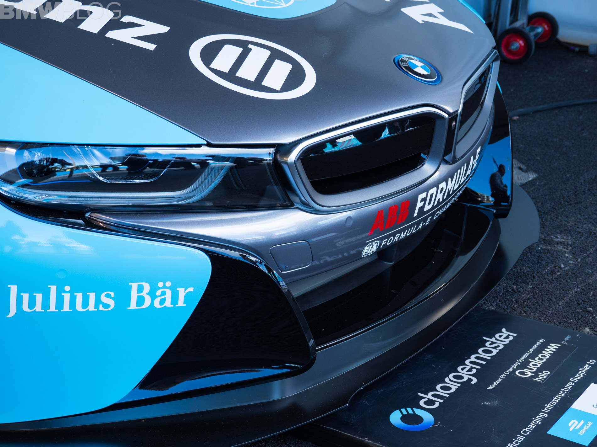 One other thing that make the i8 Safety Car stand out from its production series brother is the “Qualcomm Halo Prototype Technology” inductive charging system. The system uses no cable connections and charges this special BMW i8 CoupĂ© up to 80 per cent in just one hour, with a performance of 7.2 kilowatts. To do so, the Safety Car drives over a special bottom plate, which immediately initializes the wireless charging procedure.