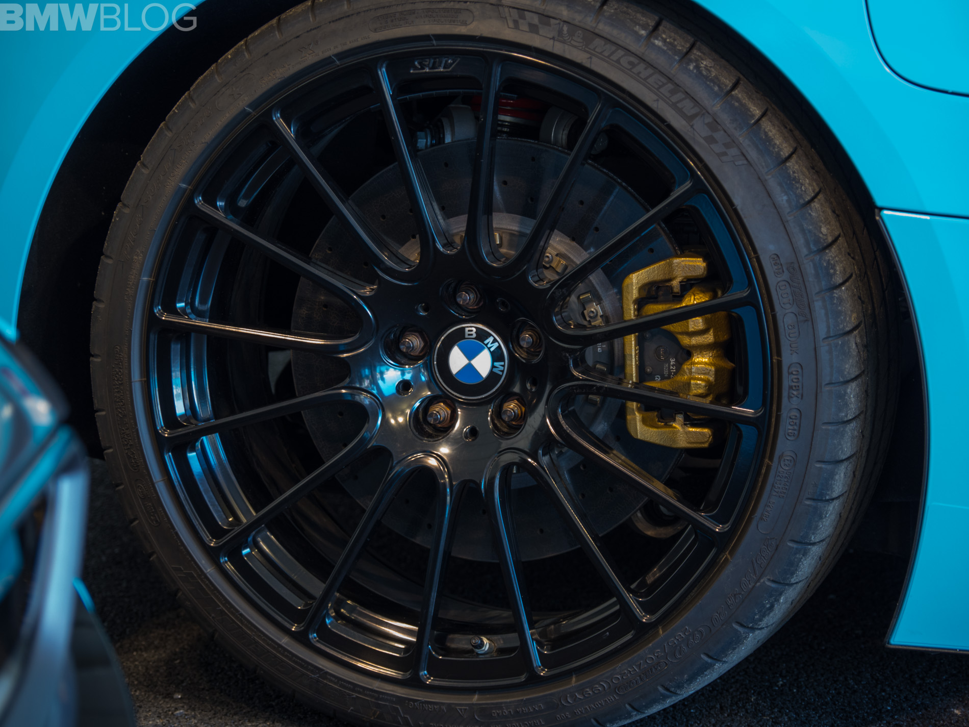 Among the upgrades, we have a roll bar inside the cabin, a rear wing and rear hatch made of carbon fiber, a front splitter, sports seats from the BMW M4 GTS, 4-point belt, a roof-mounted signal light system, BMW M carbon ceramic brakes and a sports chassis.