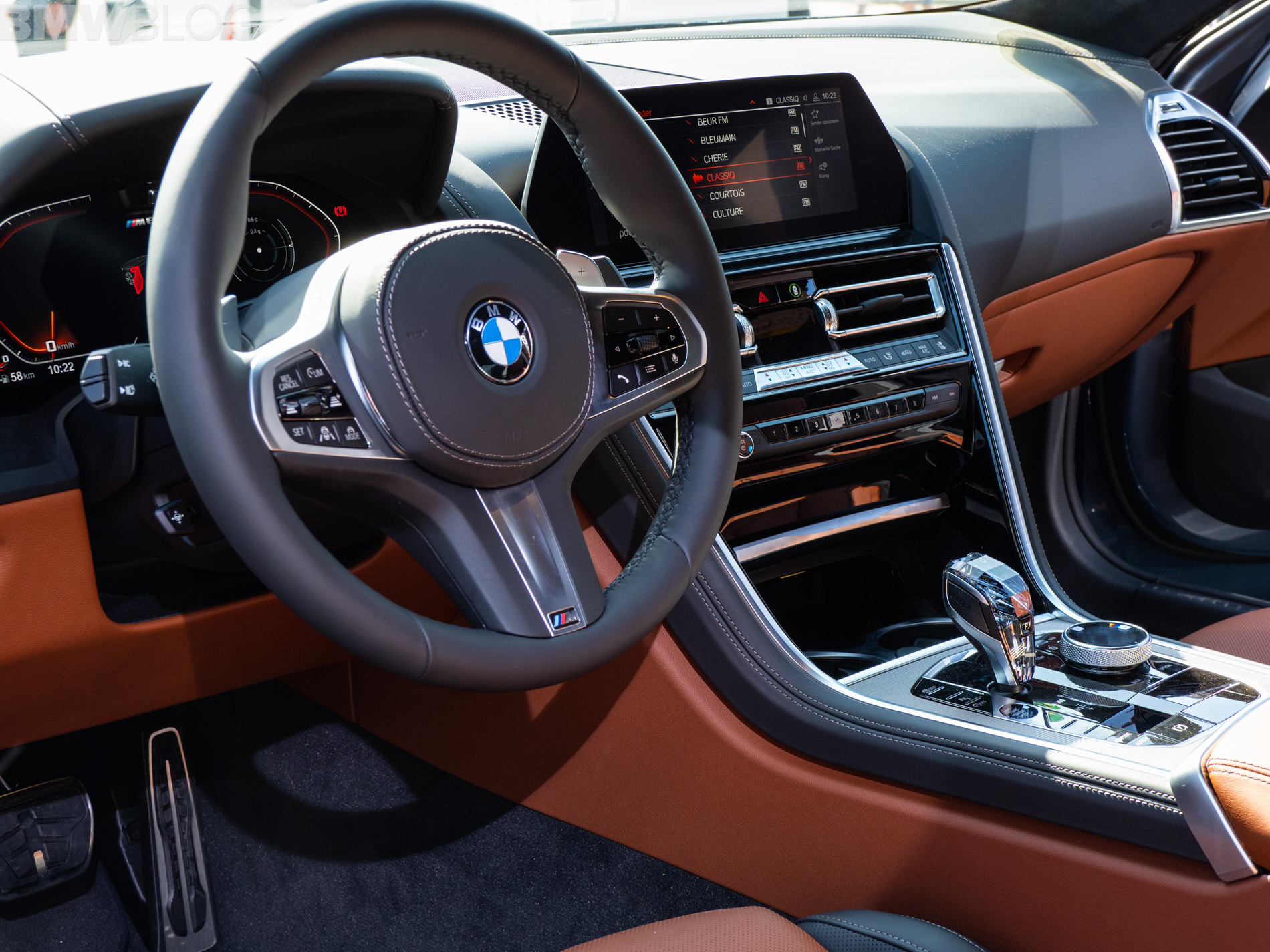 Inside, the BMW 8 Series features a newly designed instrument panel and cluster featuring the iDrive infotainment controller, “Driving Experience Control” switch for drive modes and a head-up display. The 850 has a 12.3-inch screen in the center with a 10.25-inch control display behind the steering wheel.