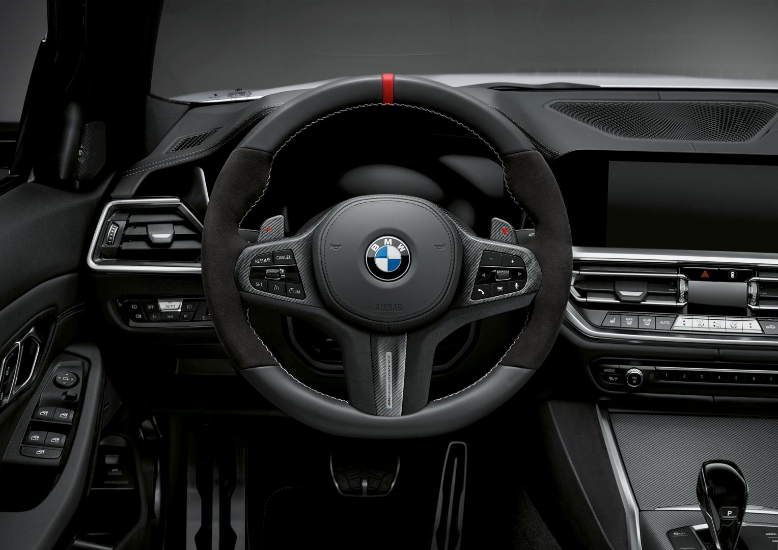 Inside the cabin you can now get an M Performance steering wheel, with its highly distinctive grip areas and large thumb rests, red center marking at the ‘12 o’clock’ position, and silver-grey, hand-sewn cross-stitch seam. The racing look can be further enhanced by the carbon-fiber shift paddles (for models with Steptronic sport transmission) and the M Performance steering wheel trim panel made of carbon fiber with an Alcantara insert and M Performance inscription. To match this there is also the carbon-fiber interior trim, also with an open-pored structure.