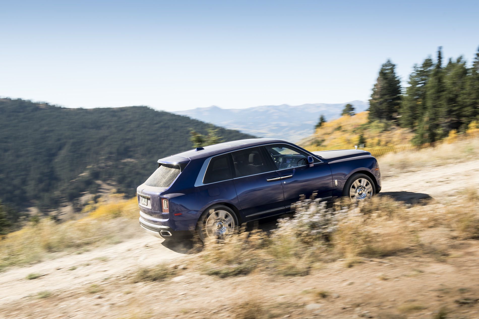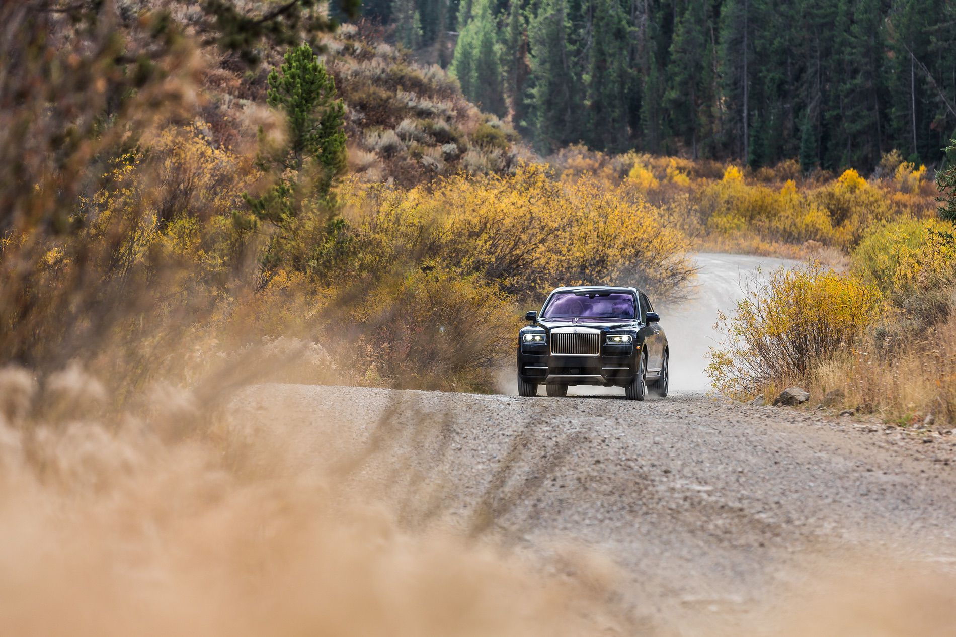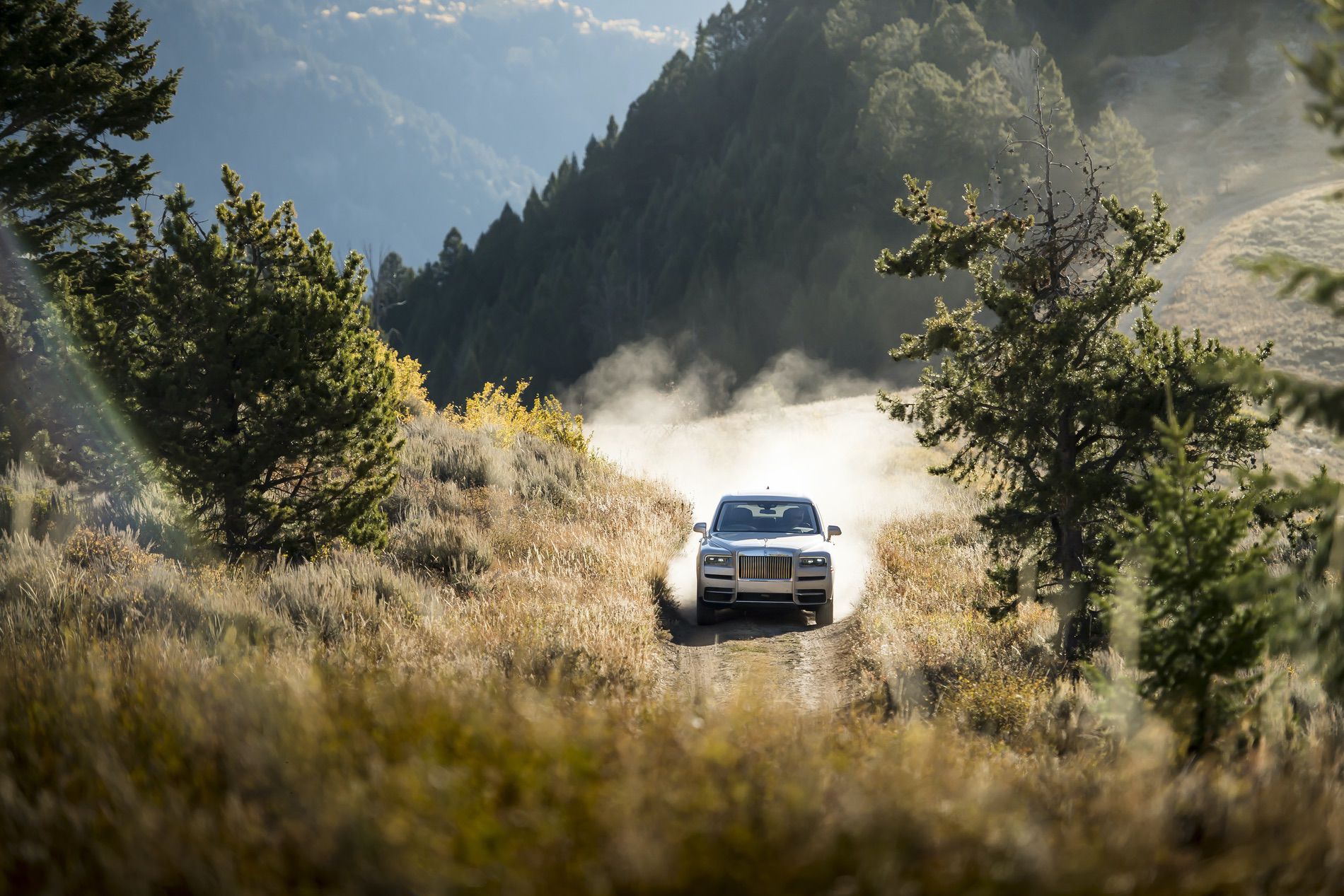 Although the Snow King lacked any snow in early October, it had plenty of soft soil, large rocks and hairpin turns that demanded our full attention. Even on those various surfaces, the Cullinan maintains the infamous magic-carpet waftability of the brand. The power delivery from the V12 is linear and progressive, which is always a plus when on difficult terrain.