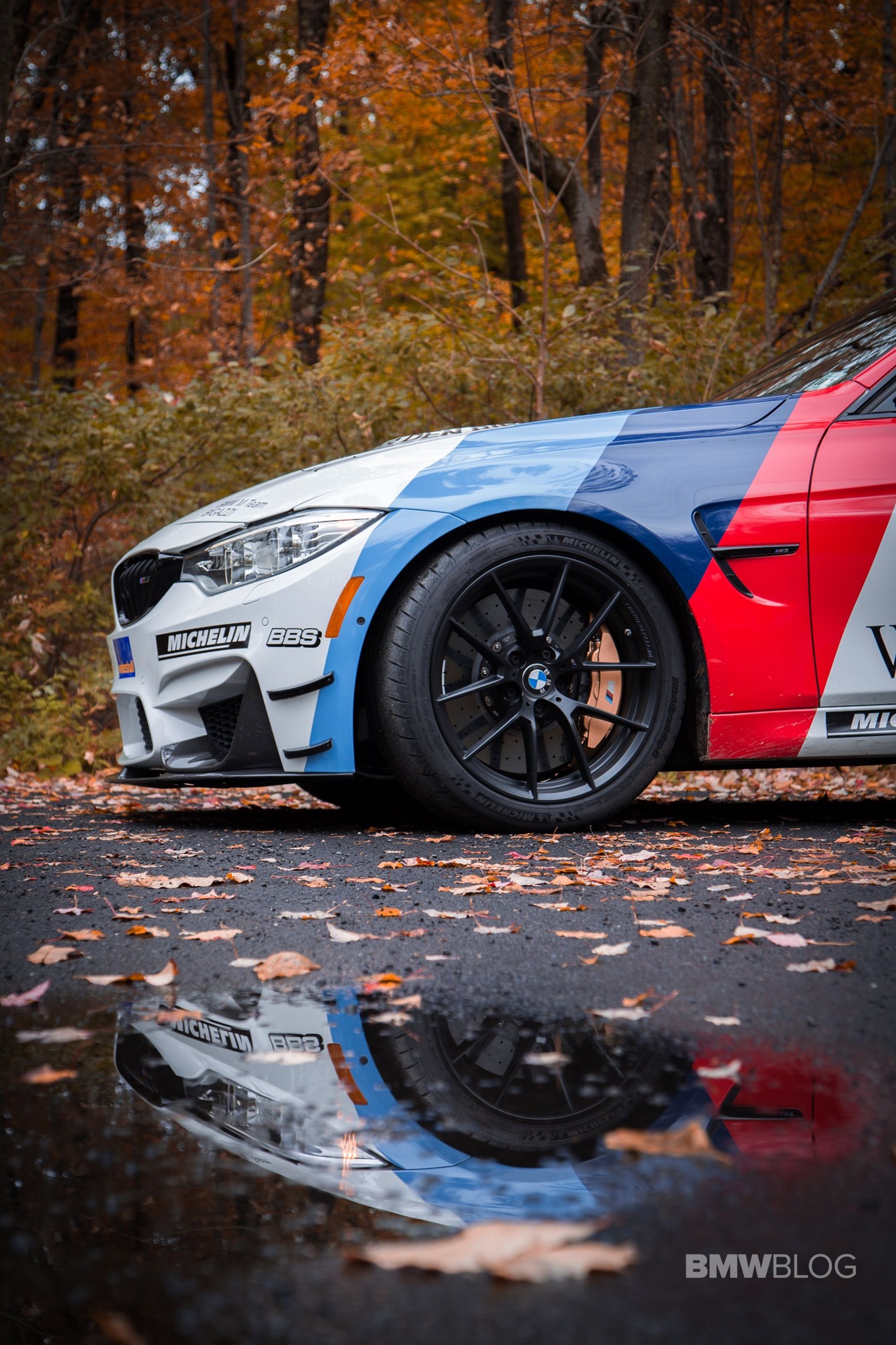 Unfortunately, it was a typical fall weekend with cold temperatures and a light drizzle—not a good combination for Michelin Pilot Sport Cup 2 tires and over 400 lb-ft of torque. So instead of heading out for some great driving roads, we went and found some fall colors and took some photos. Not as fun, but pictures last a lifetime, just like the eternal BMW M livery.