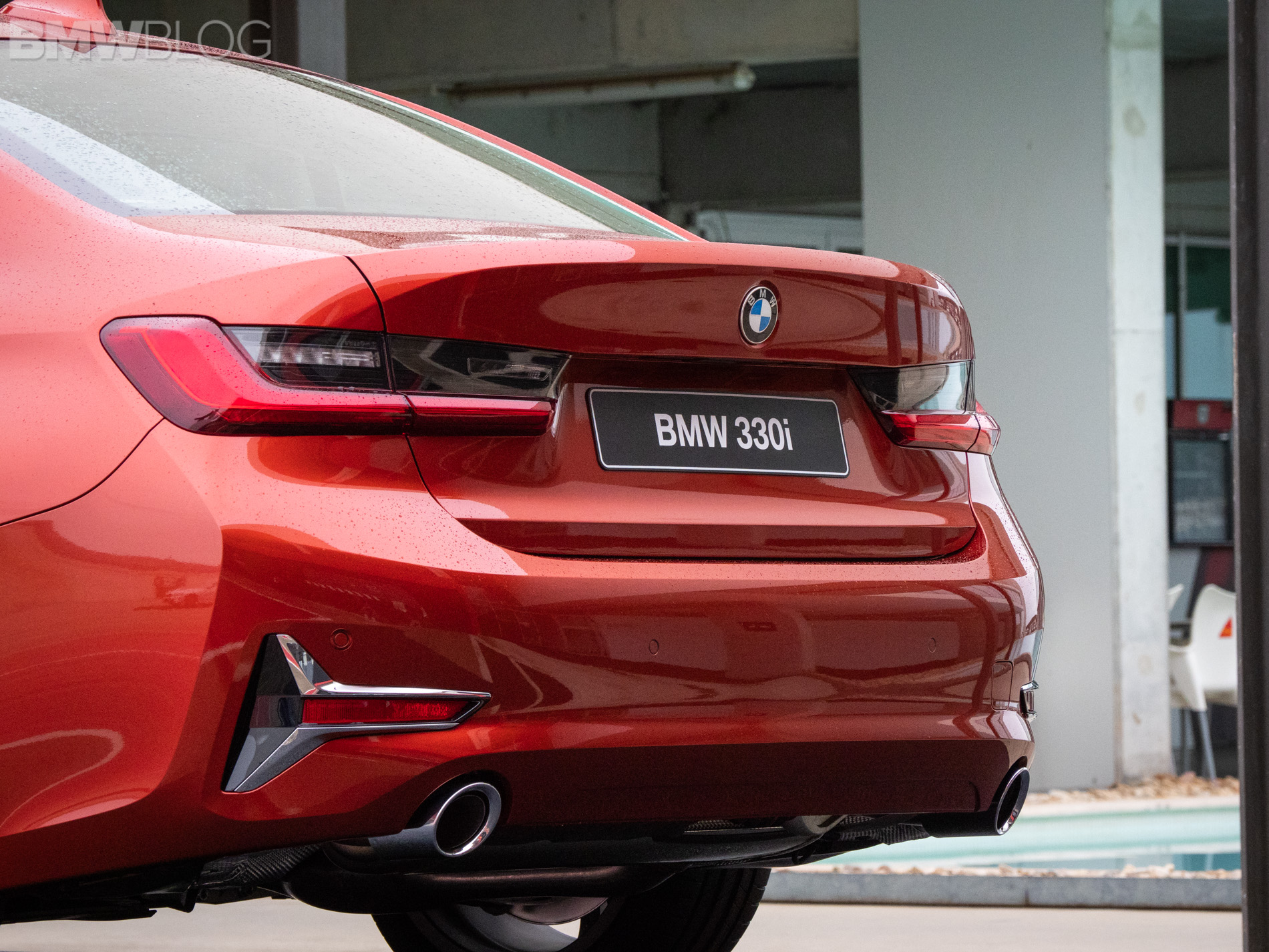 Compared to the 330i with M Sport Package we’ve seen yesterday, the Luxury Line on the 330i features a redesigned lower front bumper and air intake with little sideways “T” shaped trim pieces that surround the foglights. Those trim pieces are a bit different for BMW and a novelty in their design. They continue out back as well, flanking either side of the non-M rear bumper and it’s a way to clearly differentiate between the “Lines”.