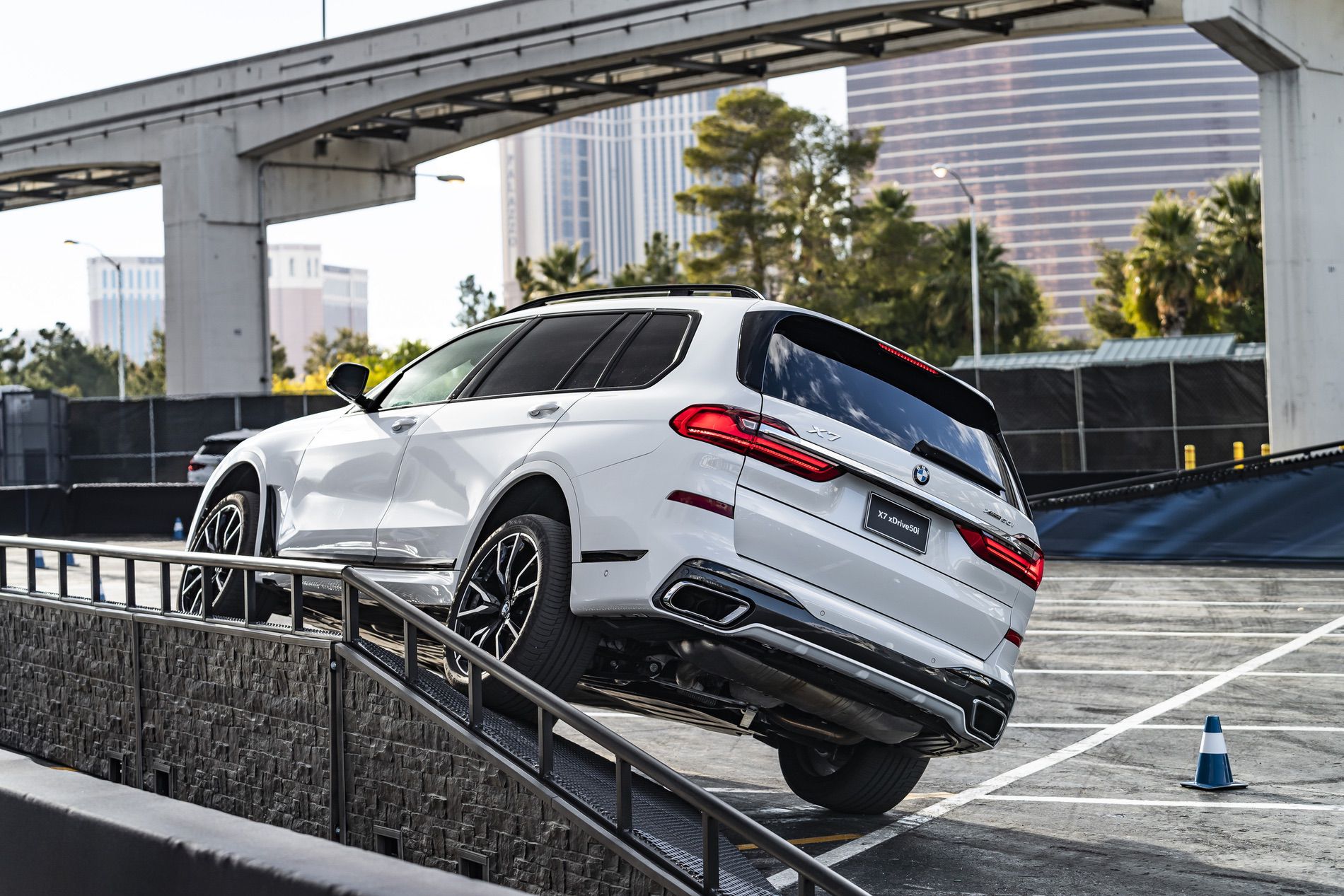 Outside of the CES halls, the Bavarians have setup a mild “offroad” course which allows the X7 to showcase its unique abilities. One of them being the Off-Road Package. The optional offering comes with skid plates, hill descent control, an electronic differential lock and a functional underbody cover.