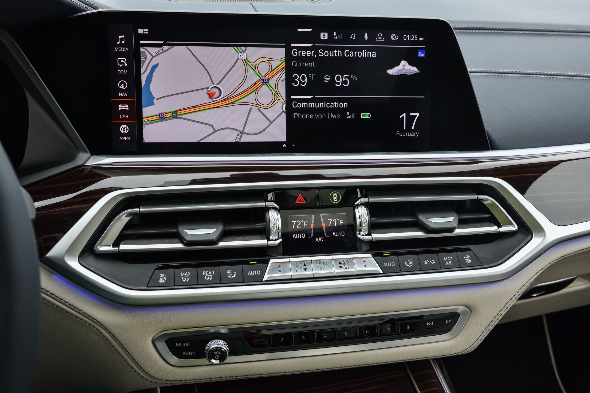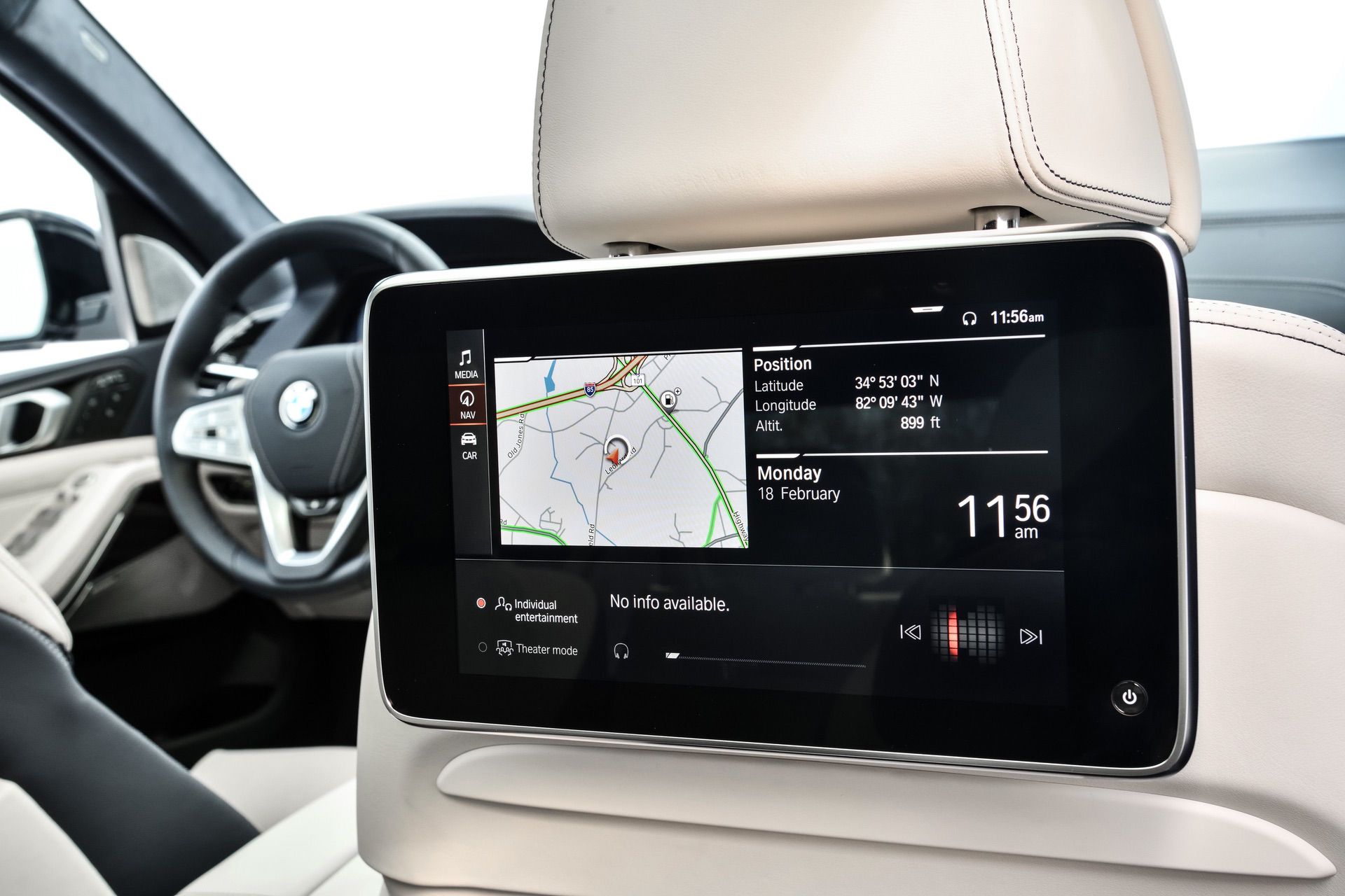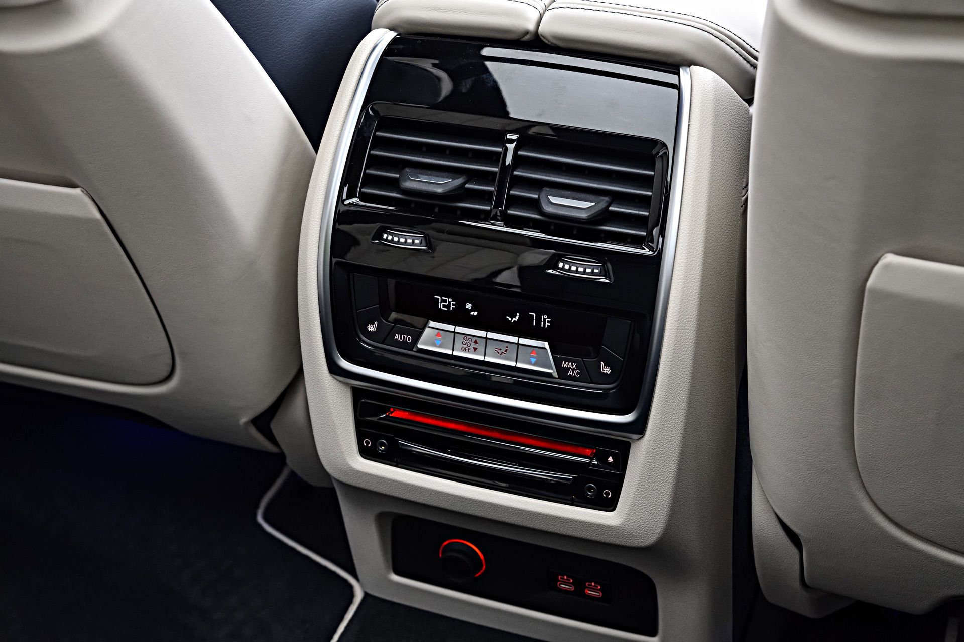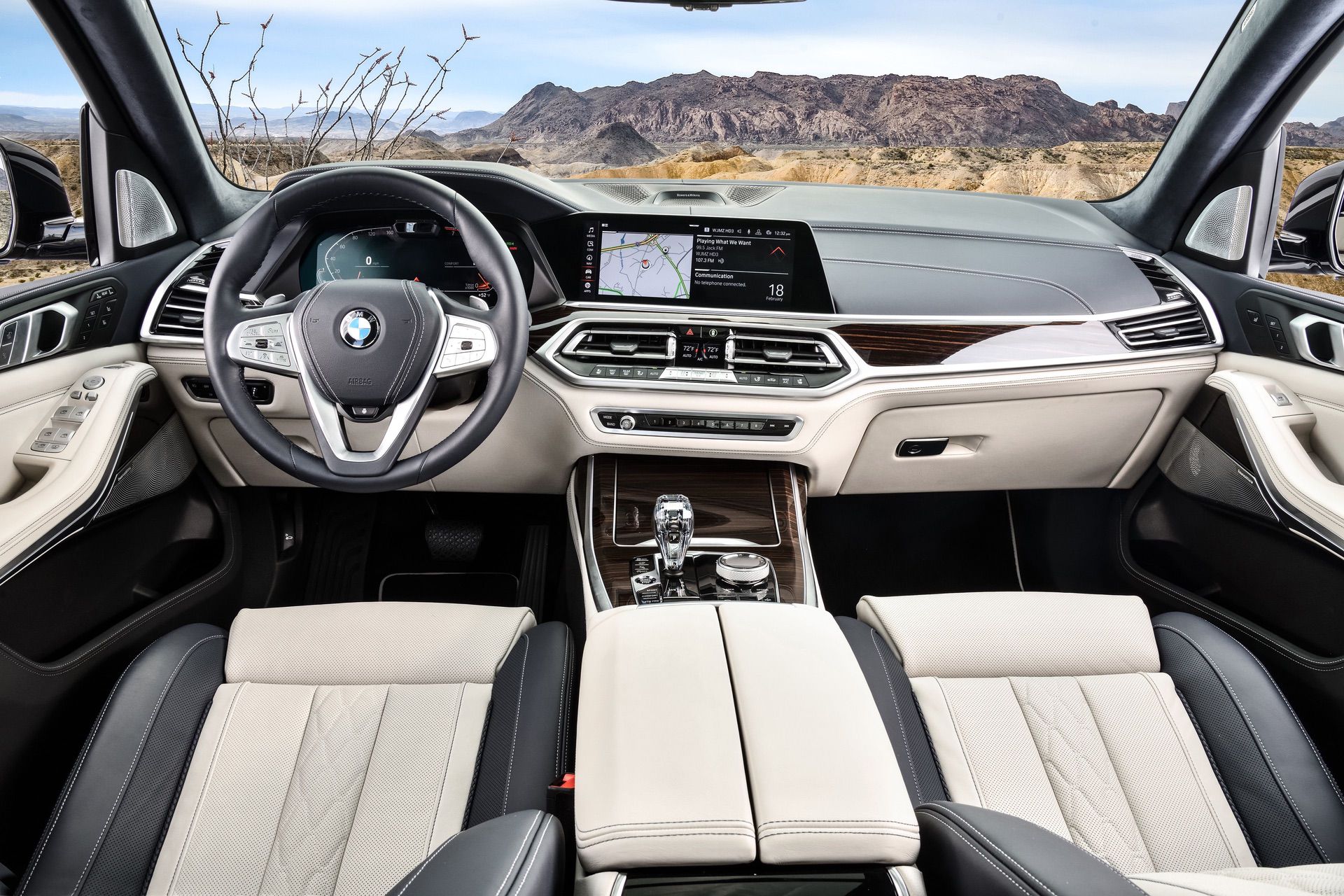 Inside, you’re getting a variation of different upholsteries – SensaTec Black, nine premium Vernasca and Extended Merino Leathers (in the X7 xDrive40i for the US market). The two-tone Ivory White/Navy Blue Full Leather Merino interior, with a Navy Blue leather dashboard and a Navy Blue Alcantara headliner, can be specified for some models. More on that particular combination in our next BMW X7 article.