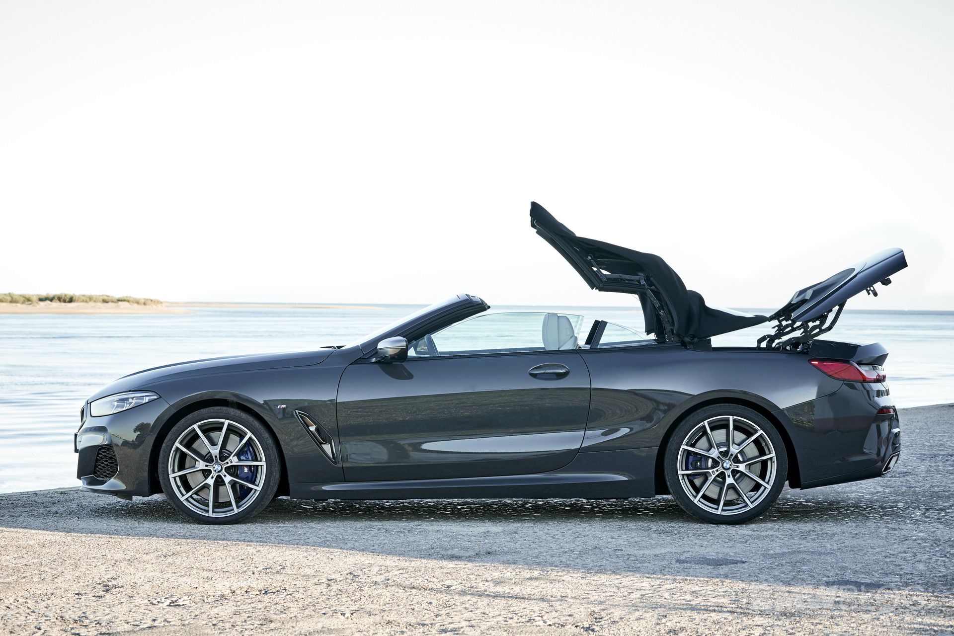 The convertible weighs around 4,740 lbs, which is approximately 260 pounds (117 kg) heavier than the M850i Coupe, so technically, the driving experience should be similar. Thanks to its lightweight construction using aluminum, magnesium and carbon-fibre-reinforced plastic (CFRP), the M850i Convertible is also 97 percent as stiff as the coupe. The stiffness is also enhanced in the M850i Convertible by an additional thrust panel under the front axle, stiffer A-pillars and a torsion ring above the rear axle.